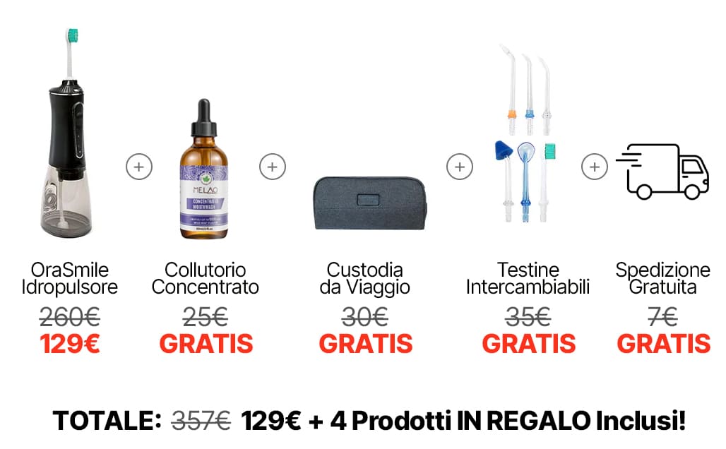 Elimina residui di cibo e batteri tra i denti e intorno ad apparecchi o impianti, prevenendo carie e infiammazioni dove lo spazzolino non arriva.